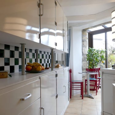 Lors d'un voyage entre amis, mes clients découvrent la Villa Cavrois (https://villa-cavrois.fr) à Croix dans les Hauts-de-France. Lors de cette visite, ils tombent sous le charme de la cuisine. Quelques semaines plus tard, ils me contactent pour me proposer ce projet un peu dingue, réaliser leur cuisine dans le style de, et parvenir à l'intégrer dans leur espace, disons atypique (on peut tout mettre derrière atypique). Manquant de culture, je me renseigne, je décortique et cherche. Je m'émerveille...je deviens fan!